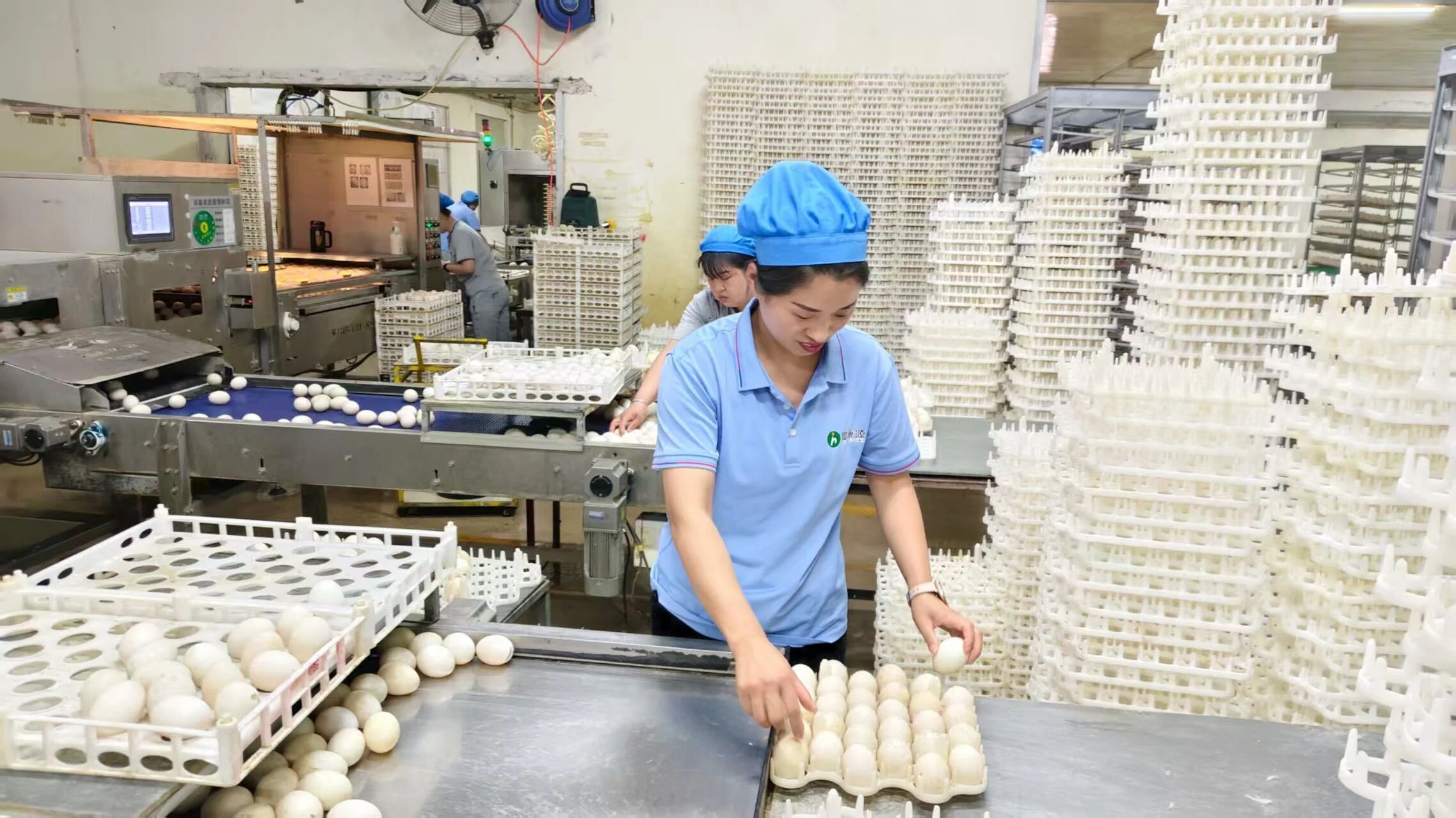 張麗梅是一位腿腳麻利、工作效率極高的員工。她身上有著強(qiáng)烈的責(zé)任感和擔(dān)當(dāng)精神,對待每一項工作都一絲不茍。在蛋庫的工作中,她深知選蛋環(huán)節(jié)的重要性?!拔覀冞@邊選蛋不均勻、有破蛋,那后續(xù)就會影響孵化,也會影響鴨苗的均勻度。”為了確保孵化出的鴨苗均勻整齊,她每隔一個多小時就會到選蛋機(jī)檢查蛋重,仔細(xì)查看選蛋機(jī)選蛋的重量是否精準(zhǔn)。只有確??酥夭灰粯拥姆N蛋能夠順利分類,才能保障孵化出的鴨苗均勻度保持一致。這份對工作細(xì)節(jié)的執(zhí)著,源于她內(nèi)心對高質(zhì)量的追求。